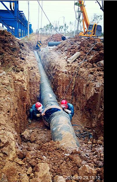 盈德氣體是荊門(mén)石化油品升級(jí)改造配套項(xiàng)目,是荊門(mén)市委、市政府重點(diǎn)招商引資項(xiàng)目,落戶(hù)于化工循環(huán)產(chǎn)業(yè)園。為服務(wù)好化工循環(huán)產(chǎn)業(yè)園,荊門(mén)市供水總公司19日接到鋪設(shè)盈德氣體專(zhuān)用DN600供水管道施工任務(wù)后,打破常規(guī),當(dāng)晚就安排人員、分解任務(wù);9月20日上午完成施工隊(duì)伍組織,工地測(cè)量、工程材料采購(gòu),下午立即進(jìn)場(chǎng)溝槽開(kāi)挖。施工期間正逢207外環(huán)線(xiàn)與陽(yáng)光大道部分路段封閉改造,公司積極與道路改造方協(xié)調(diào),利用每天道路施工間歇,將20根鋼管100根球墨管順利運(yùn)轉(zhuǎn)至工地。為了能在預(yù)定時(shí)間內(nèi)完成任務(wù),工人每天早晨5點(diǎn)半進(jìn)入施工現(xiàn)場(chǎng),一直到晚上10點(diǎn)施工結(jié)束,中午不休息,早、中、晚三餐就在現(xiàn)場(chǎng)吃快餐。十天鋪通盈德氣體專(zhuān)用840米DN600供水管道。